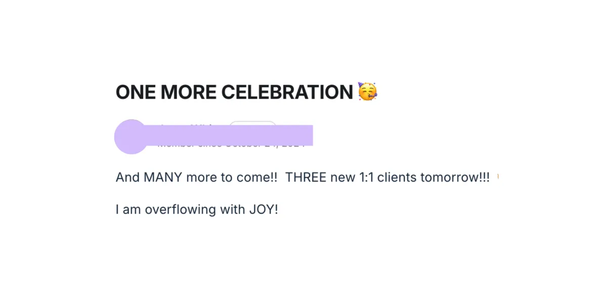 A year ago, I didn’t even have an offer I liked. Now I have a thriving membership, premium-priced services, and a grounded business that finally feels like me.